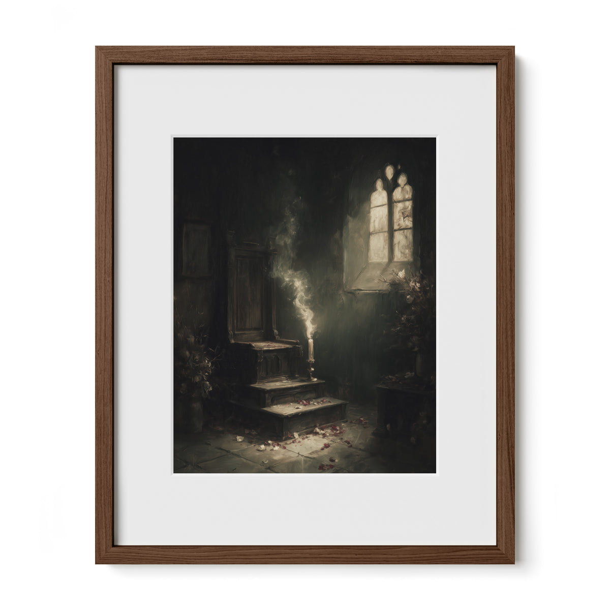 Prints are made on archival matte fine art paper (230 GSM) for sharp detail and lasting quality. Frames are crafted from solid oak with real glass (1–2 mm) and are available matted or non-matted.